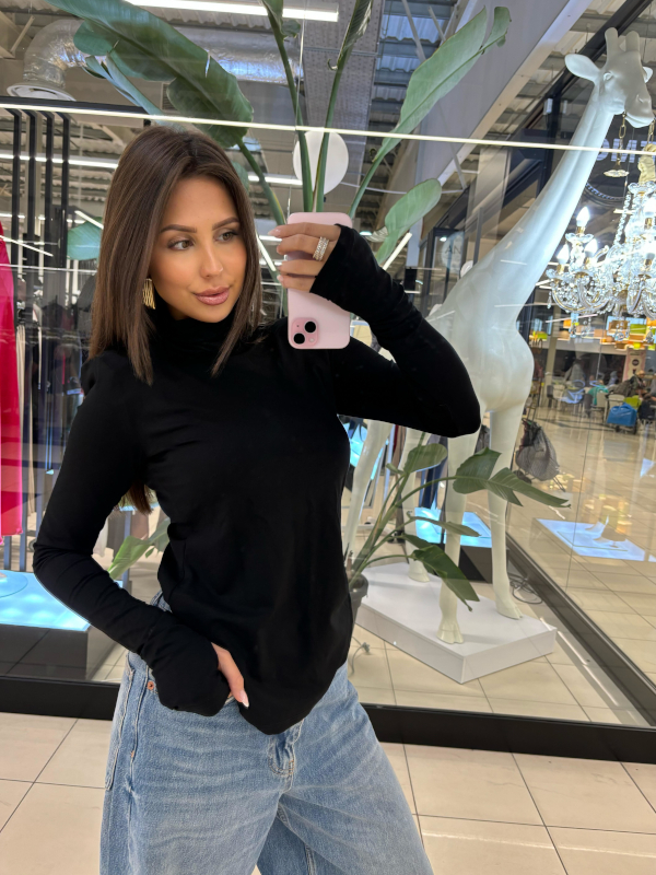EMO BLUZKA GOLF Z PODUSZKAMI NA RAMIONACH CZARNY