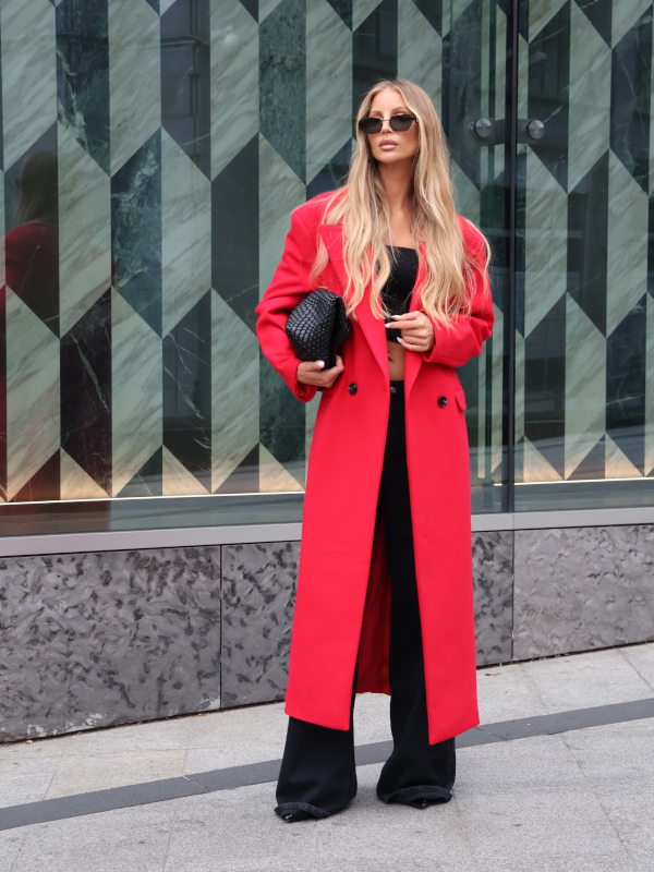EMO DŁUGI PŁASZCZ WEŁNIANY CZERWONY