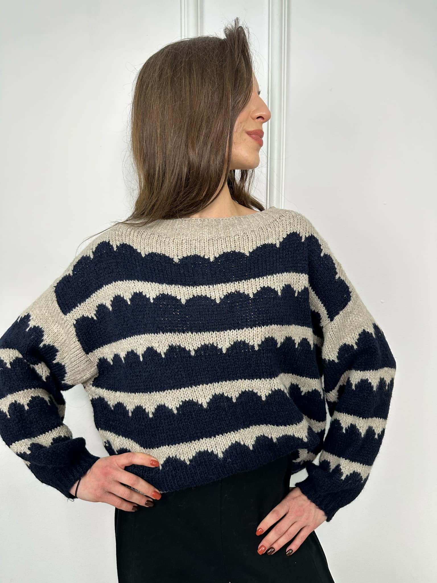 SWETER FALA GRANAT/BEŻ
