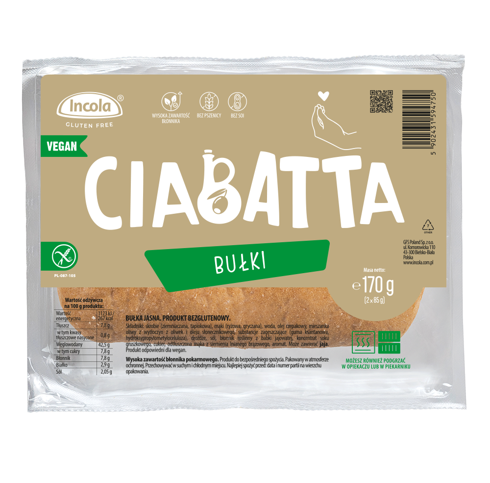 BUŁKI CIABATTA BEZGLUTENOWE (2 szt.) 170 g - INCOLA