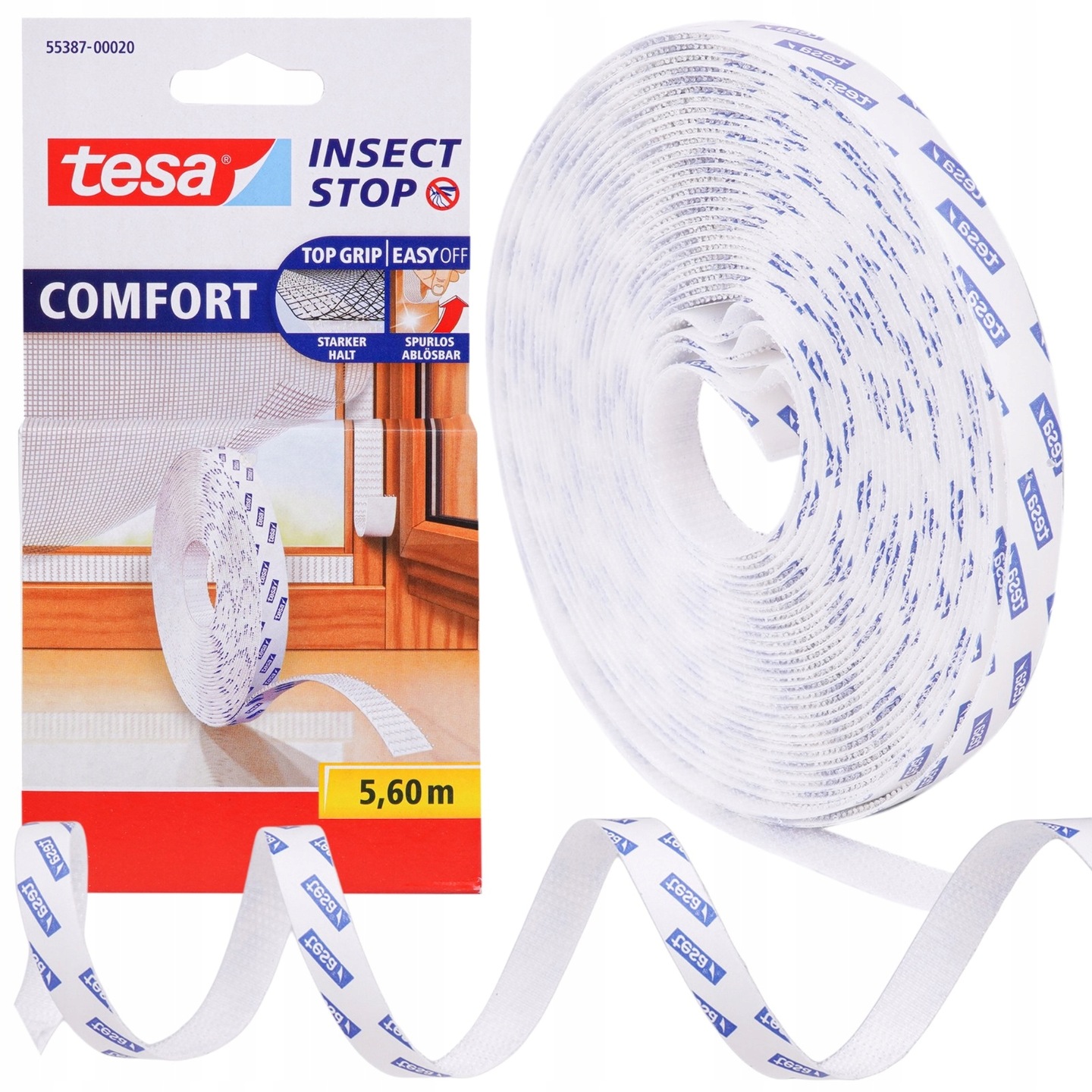 TESA Rzep samoprzylepny 5,6M X 9MM BIAŁY taśma rzepowa do moskitier COMFORT siatki