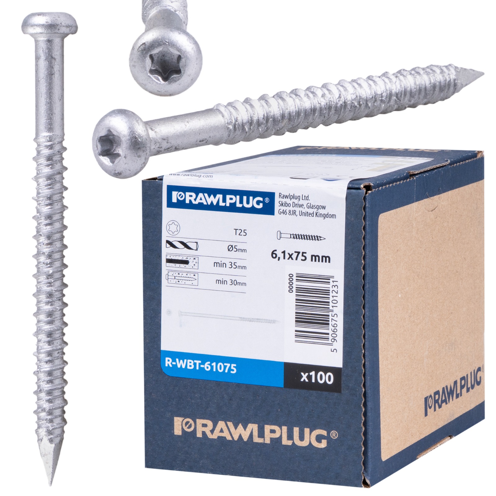 RAWLPLUG Wkręty dachowe DO BETONU DREWNA T25 R-WBT 6,1X75MM 100SZT