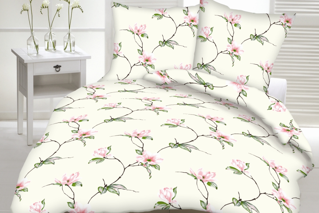Pościel z kory 100% bawełna 160x200 wzór krem kwiaty