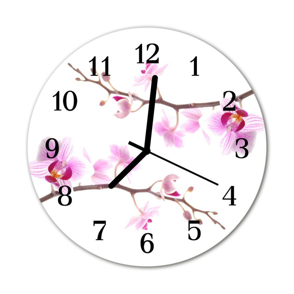 Reloj de vidrio para cocina Orquídea fi 30 cm Puntas negras