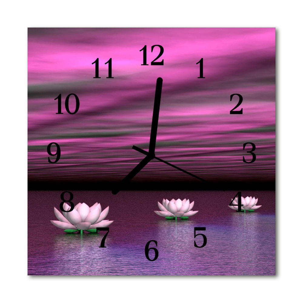 Reloj de vidrio Lirios acuáticos 30x30 cm Puntas negras