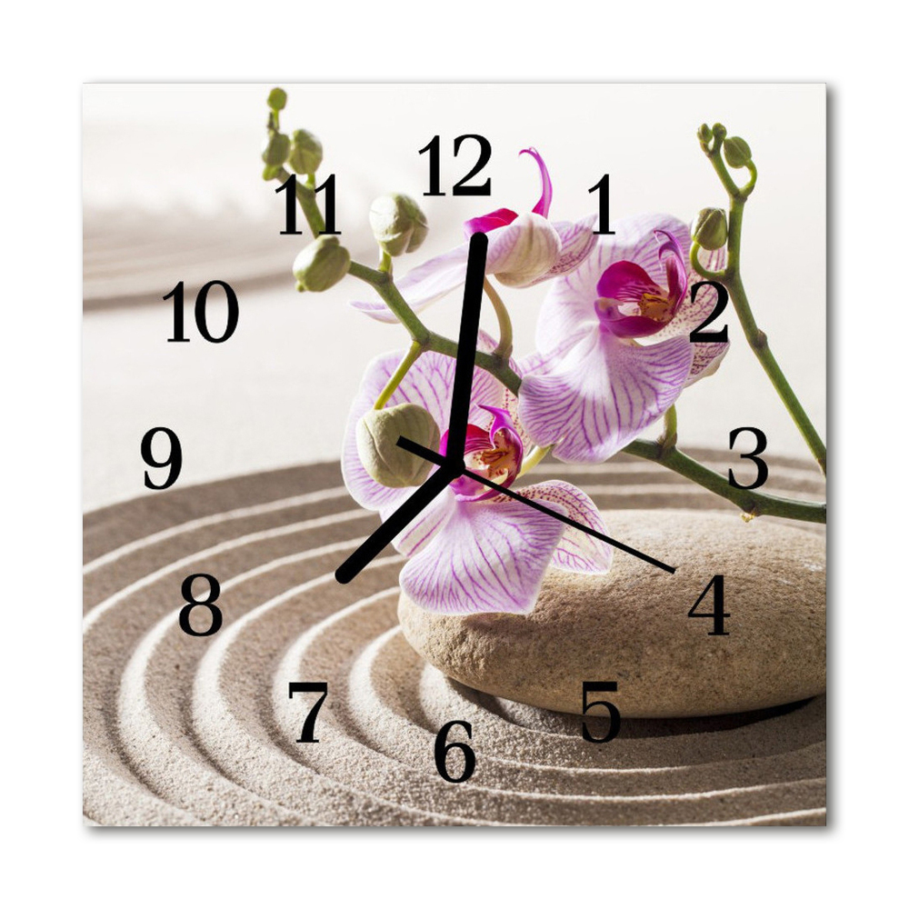 Reloj de vidrio Orquídea arena 30x30 cm Puntas negras