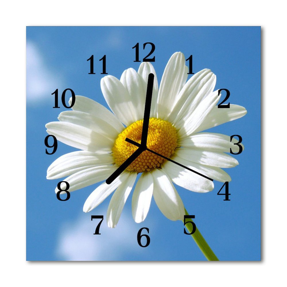 Glass Kitchen Clock Flower flowers & plants white 12x12 in (30x30 cm) Black