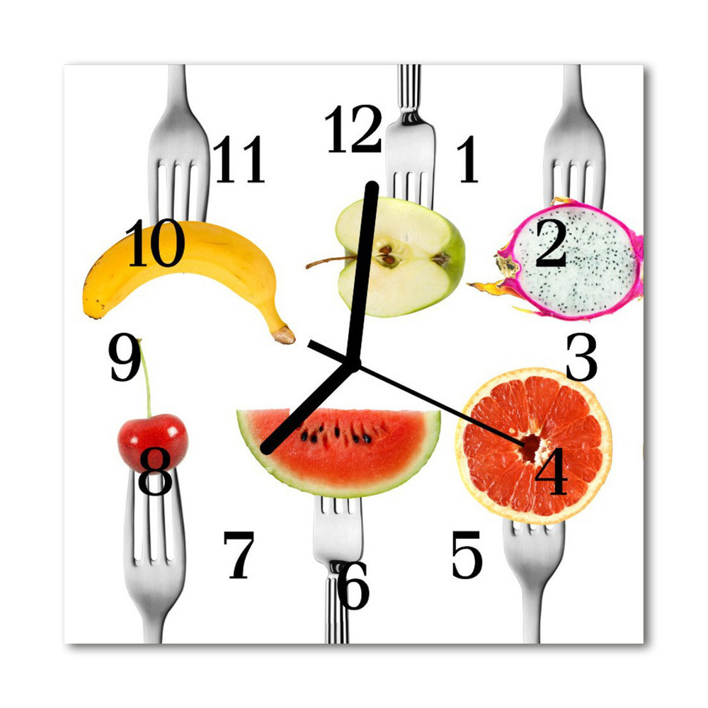 Glass Kitchen Clock Fruit kitchen multi-coloured 12x12 in (30x30 cm) Black