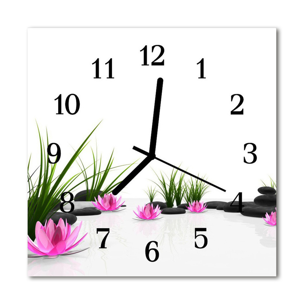 Glass Kitchen Clock Lotus flower flowers & plants pink 12x12 in (30x30 cm) Black