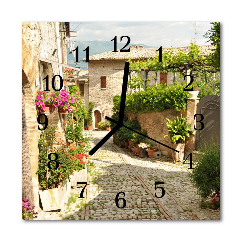 Glass Kitchen Clock Alley flowers city multi-coloured 12x12 in (30x30 cm) Black