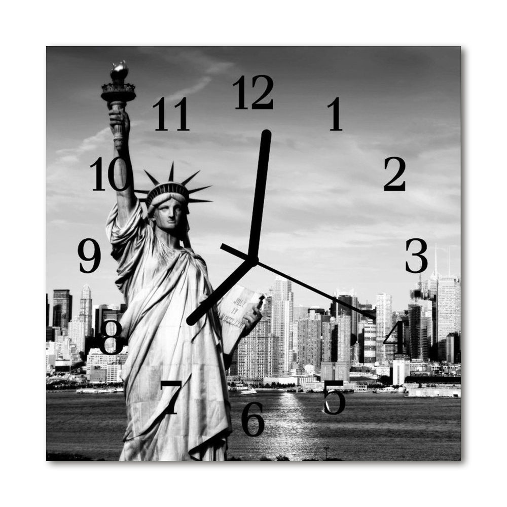 Glass Kitchen Clock Statue of liberty city black & white 12x12 in (30x30 cm) Black