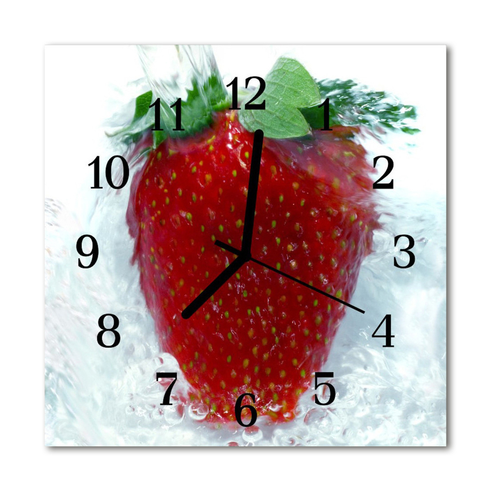 Glass Kitchen Clock Strawberry kitchen red 12x12 in (30x30 cm) Black