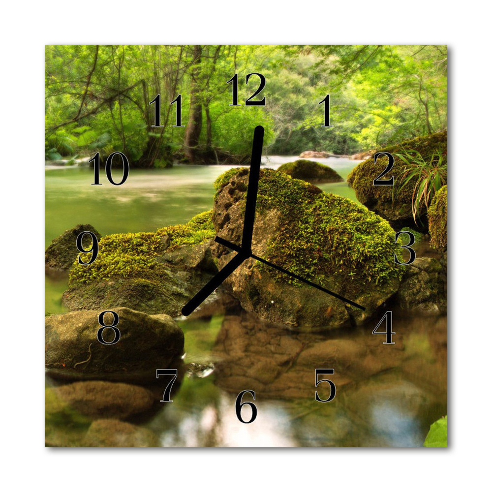 Glass Kitchen Clock Landscape river landscapes green 12x12 in (30x30 cm) Black