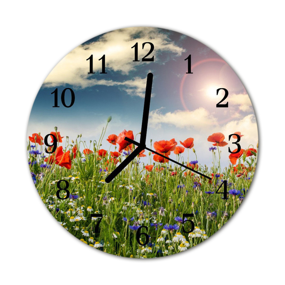 Glass Wall Clock Meadow landscape green fi12in (fi 30 cm)