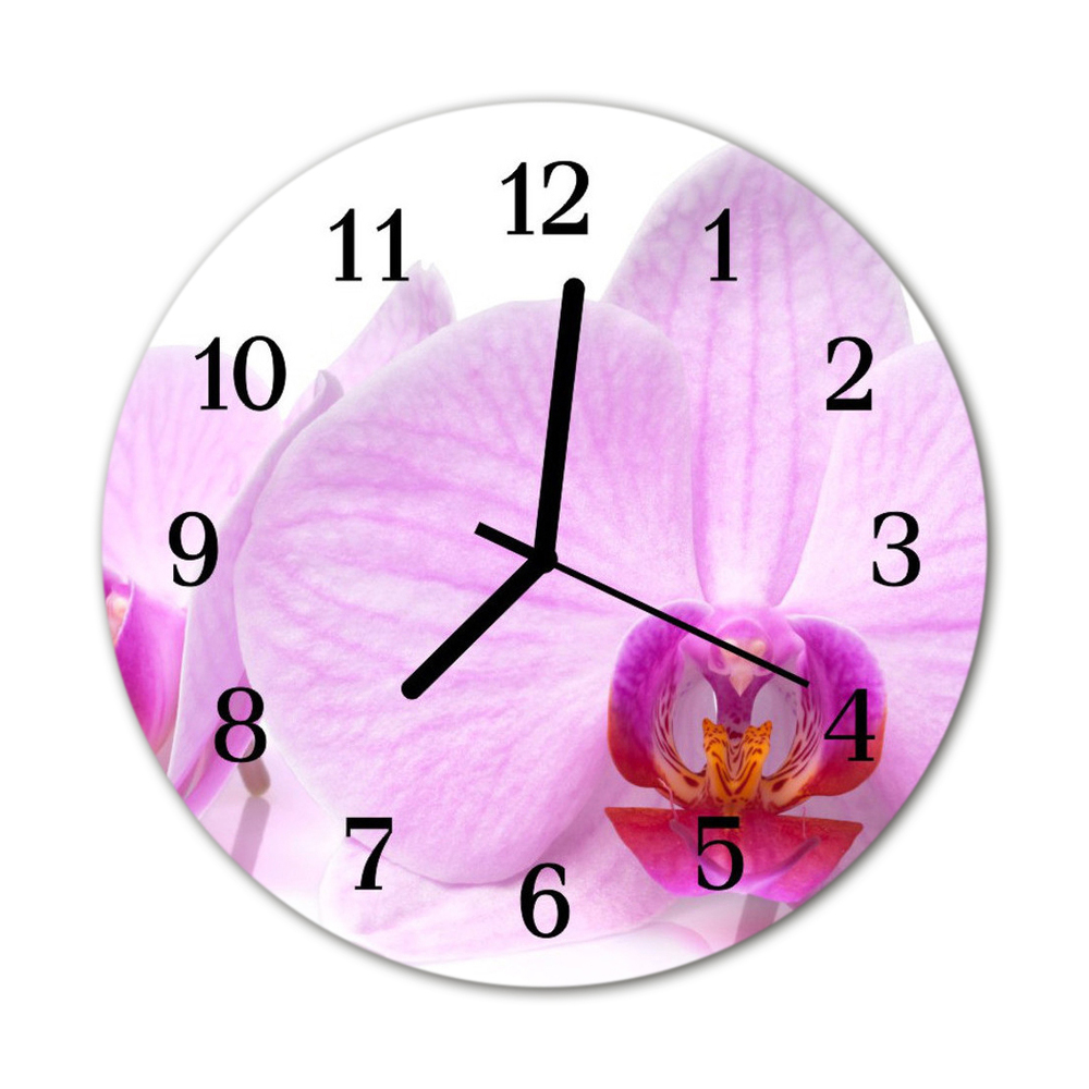 Glass Kitchen Clock Orchid flowers & plants pink 12x12 in (30x30 cm) Black