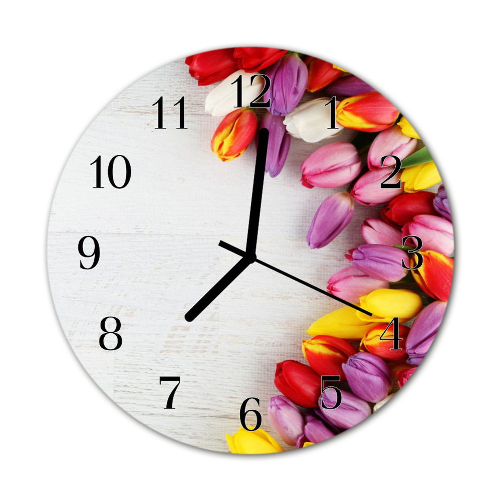 Glass Kitchen Clock Colorful tulips flowers & plants multi-coloured 12x12 in (30x30 cm) Black
