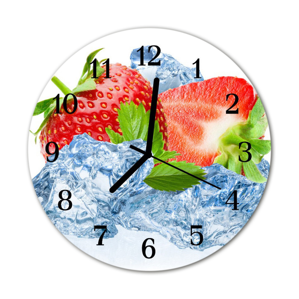 Glass Wall Clock Strawberries ice cream fruit ice red fi12in (fi 30 cm)