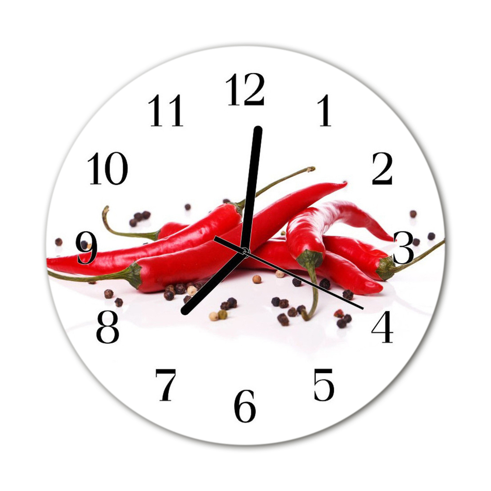 Glass Wall Clock Chillies food and drinks white fi12in (fi 30 cm)