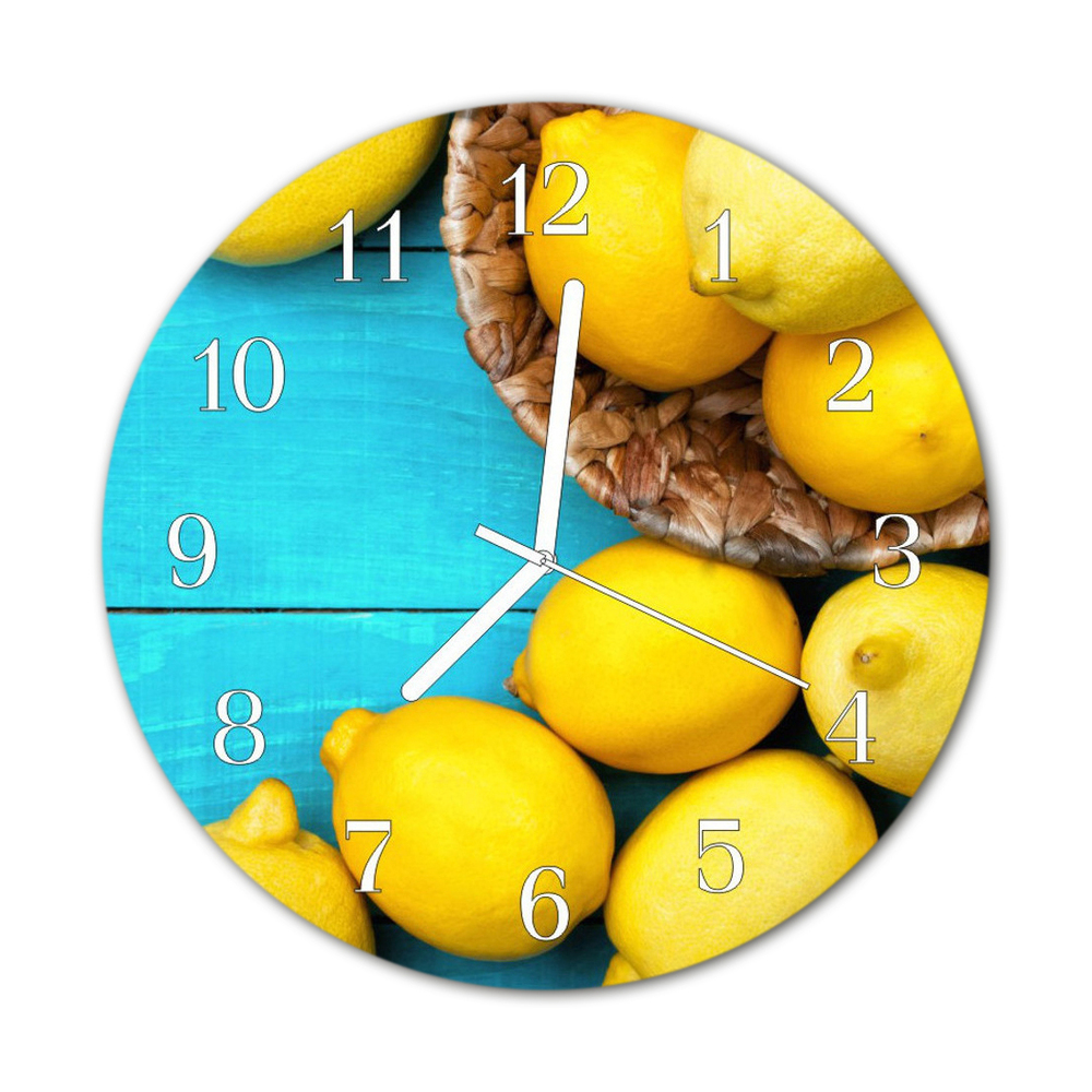 Glass Wall Clock Lemons fruit yellow fi12in (fi 30 cm)
