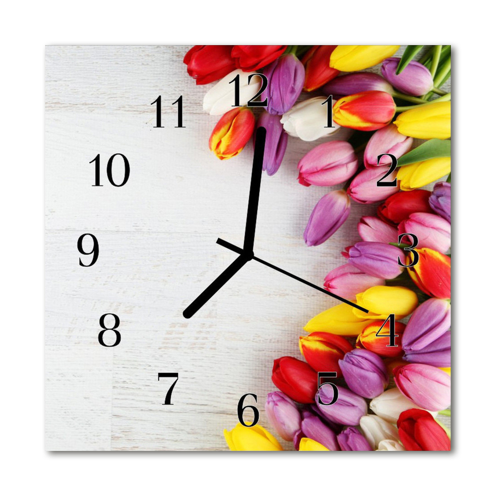 Glass Wall Clock Tulips plants multi-coloured 12x12 in (30x30 cm) Black