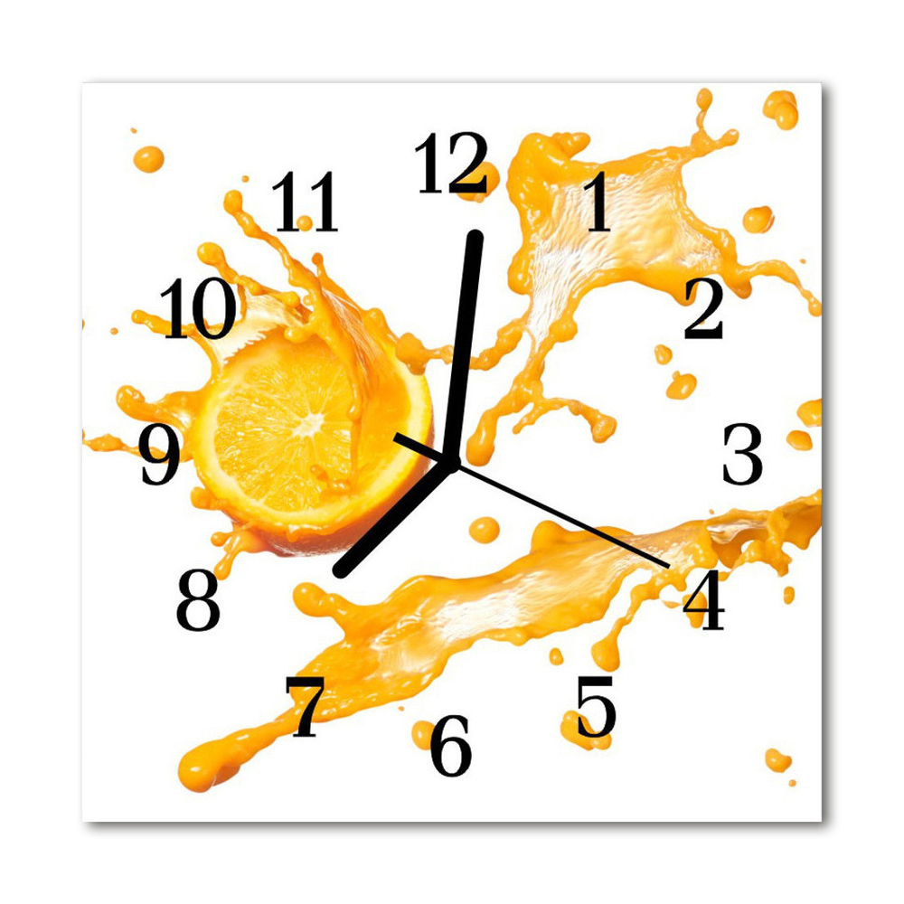 Glass Wall Clock Orange juice food and drinks orange 12x12 in (30x30 cm) Black