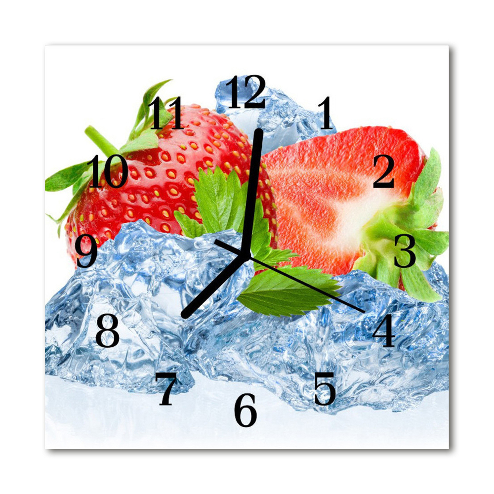 Glass Wall Clock Strawberries ice cream fruit ice red 12x12 in (30x30 cm) Black