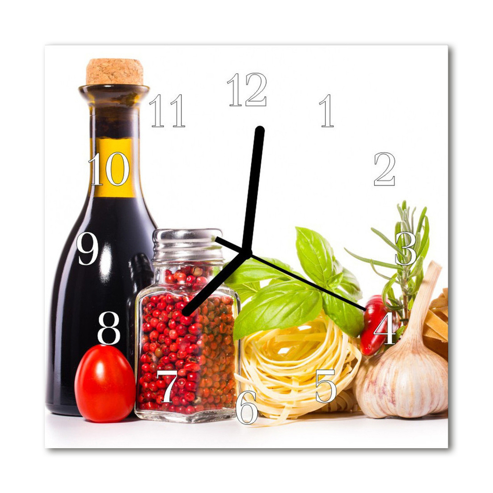 Glass Wall Clock Pasta kitchen multi-coloured 12x12 in (30x30 cm)