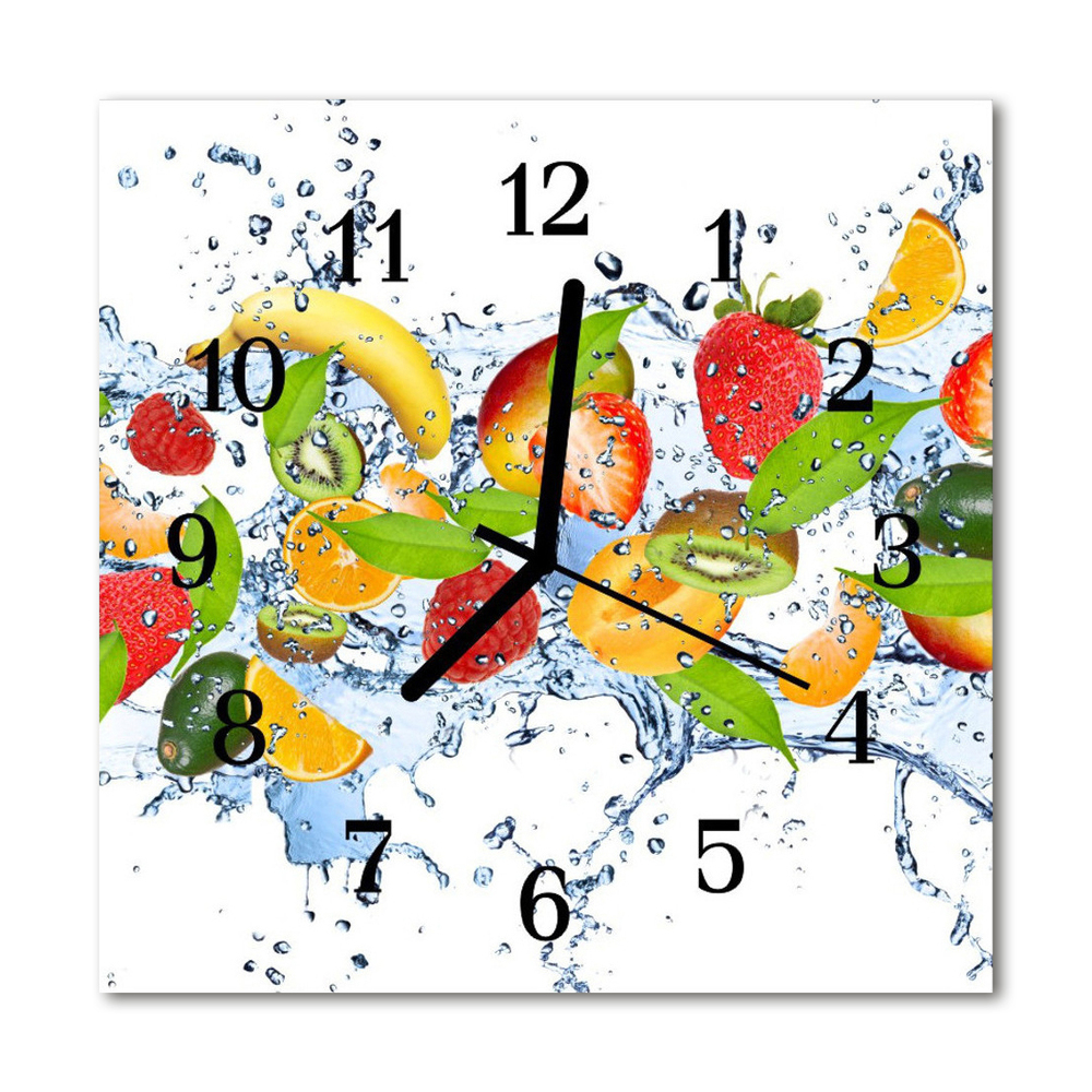 Glass Wall Clock Fruit water fruit multi-coloured 12x12 in (30x30 cm) Black