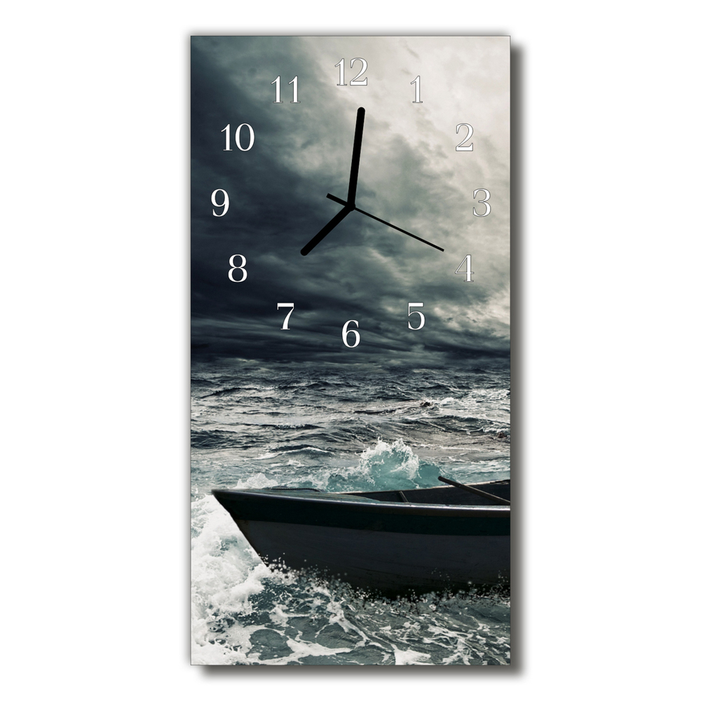 Glass Wall Clock Boat 12x24 in (30x60 cm)