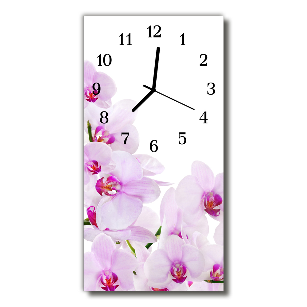 Glass Wall Clock Orchids 12x24 in (30x60 cm) Black