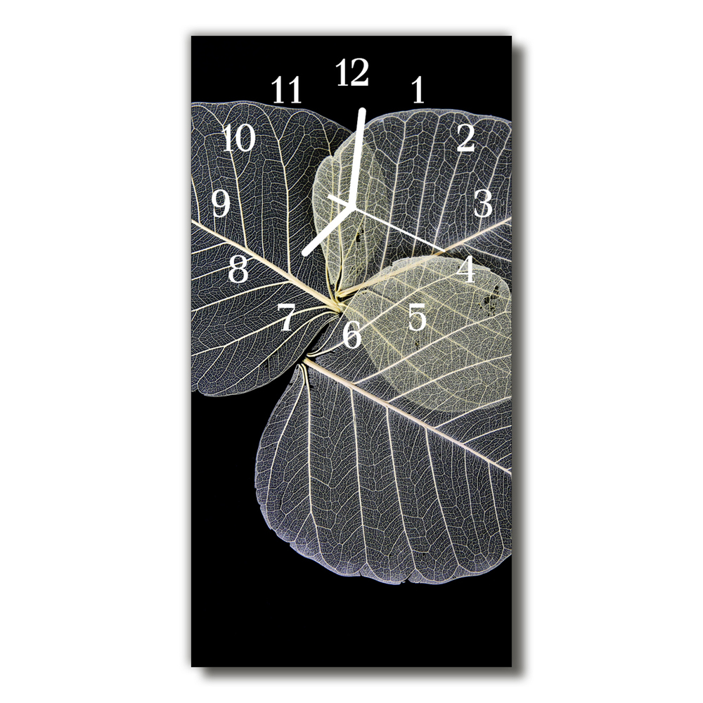 Glass Kitchen Clock Plant leaves 12x24 in (30x60 cm) White