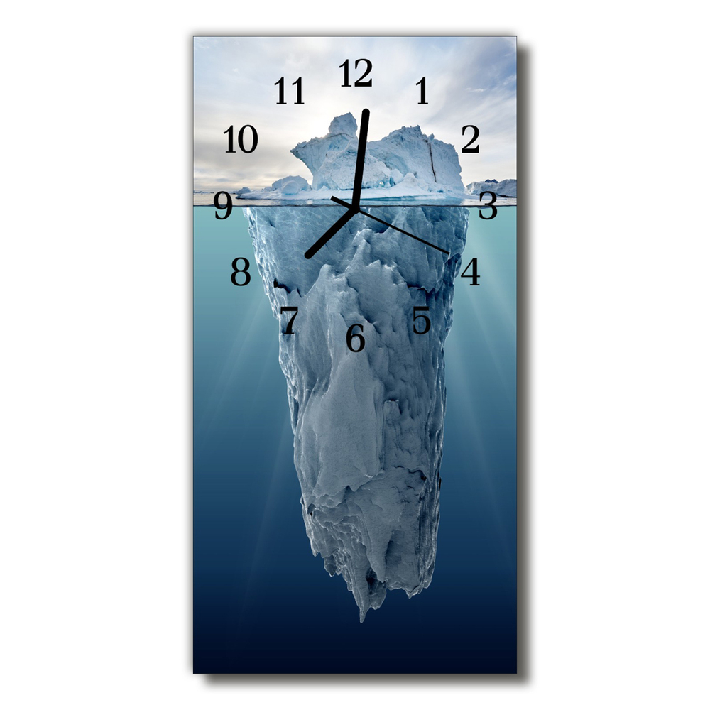 Ceas de perete din sticla vertical Albastru ghețar peisaje montane 30x60 cm Negru