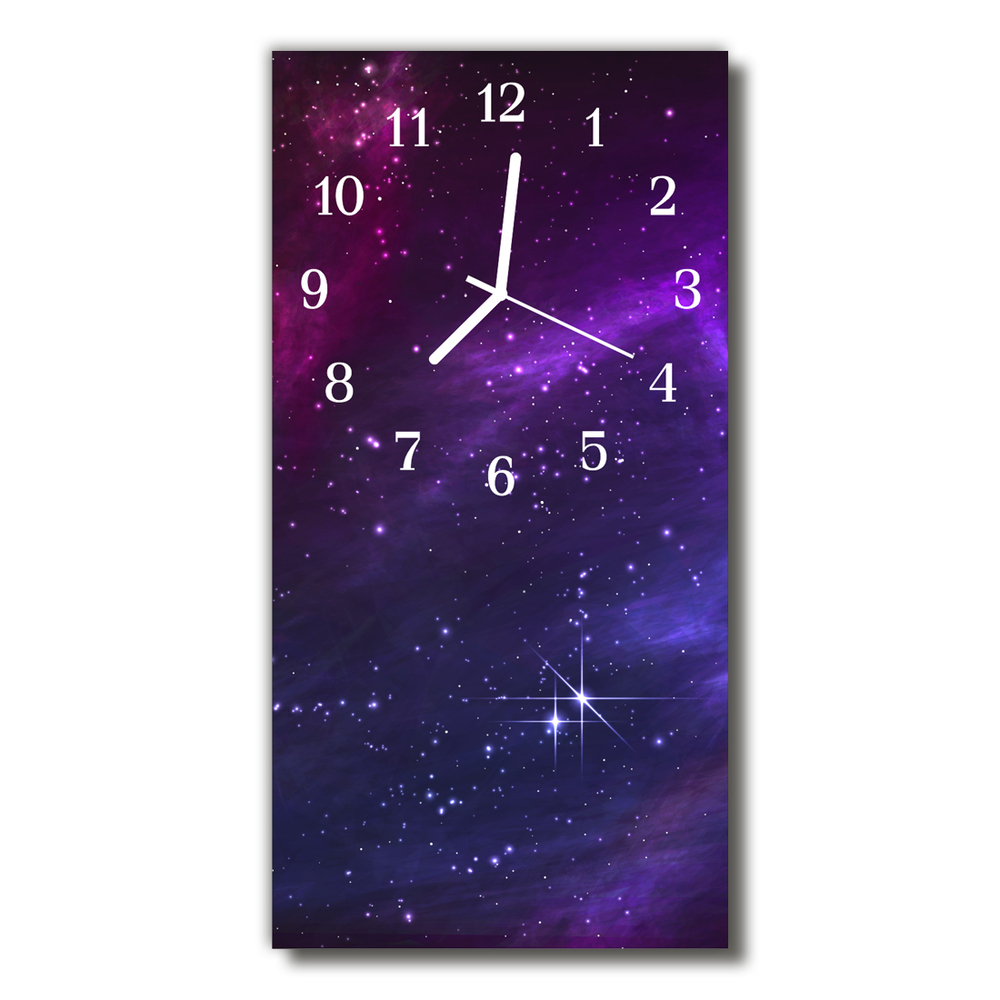 Ceas de perete din sticla vertical Galaxy spațiu violet 30x60 cm Alb