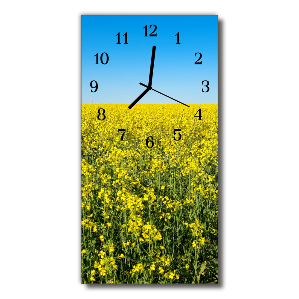 Ceas de perete din sticla vertical Peisaje câmp de rapiță galben 30x60 cm Negru