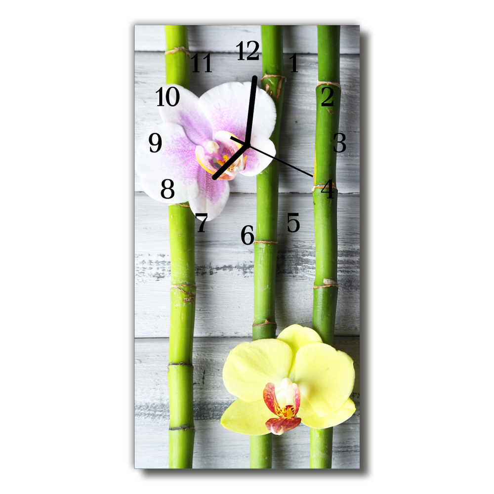 Ceas de perete din sticla vertical Bamboo culoare orhidee floare 30x60 cm Negru