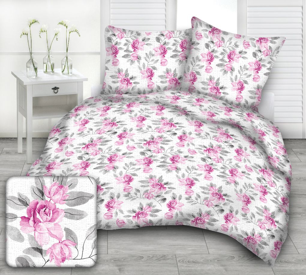 Pościel z kory 140x200 wzór różowo-szara koronka z kokardami