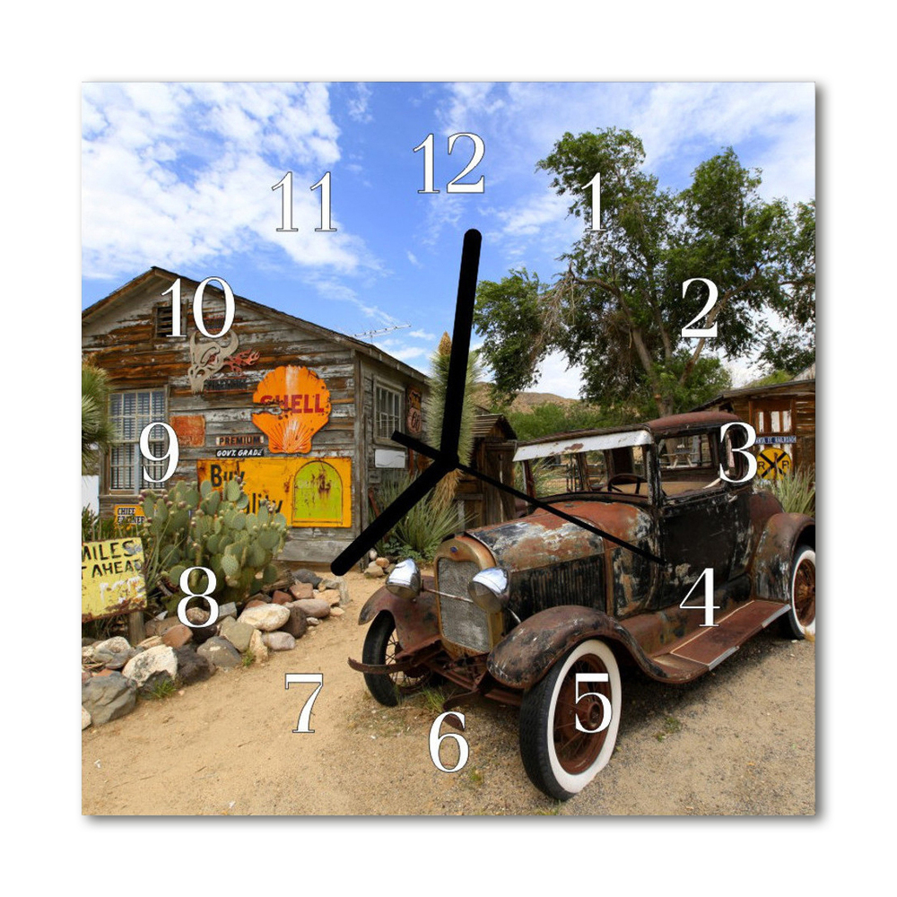 Szögletes fali üvegóra Régi autó 30x30 cm