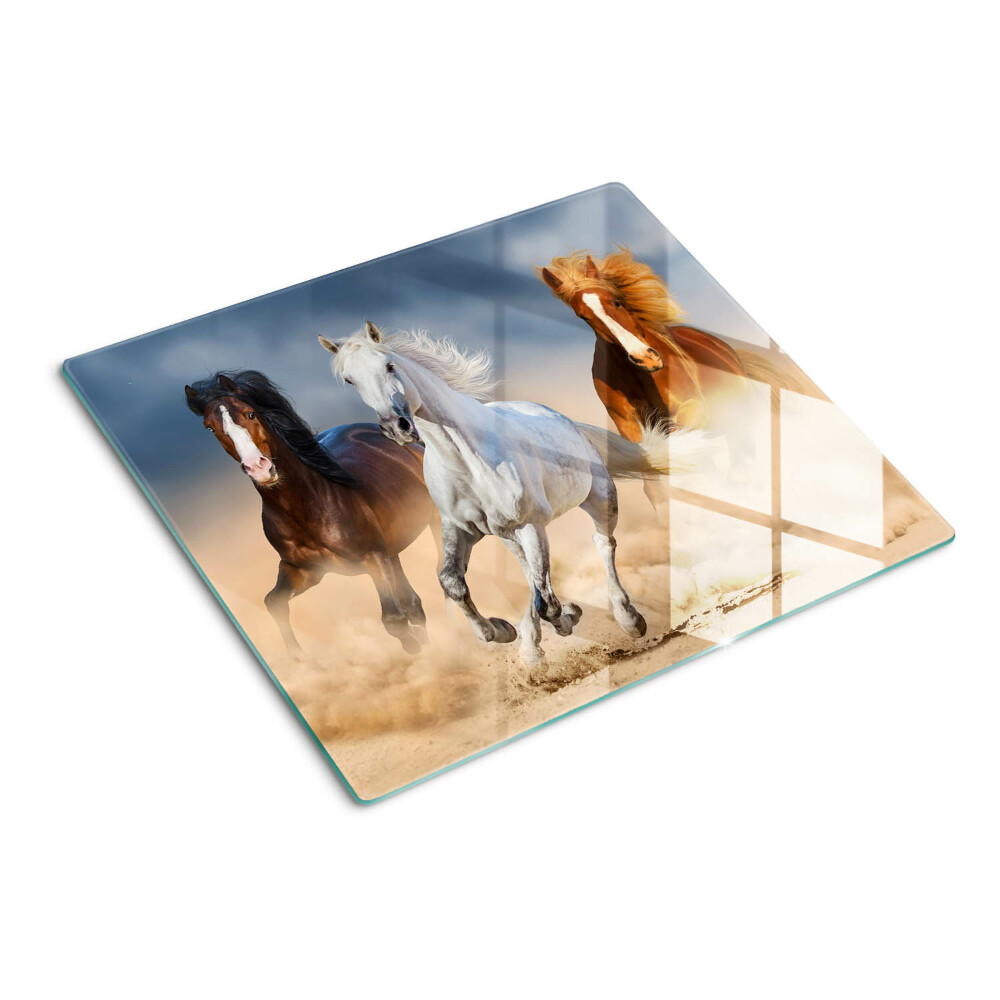 Edzett üveg vágódeszka Három vágtató ló 60x52 cm