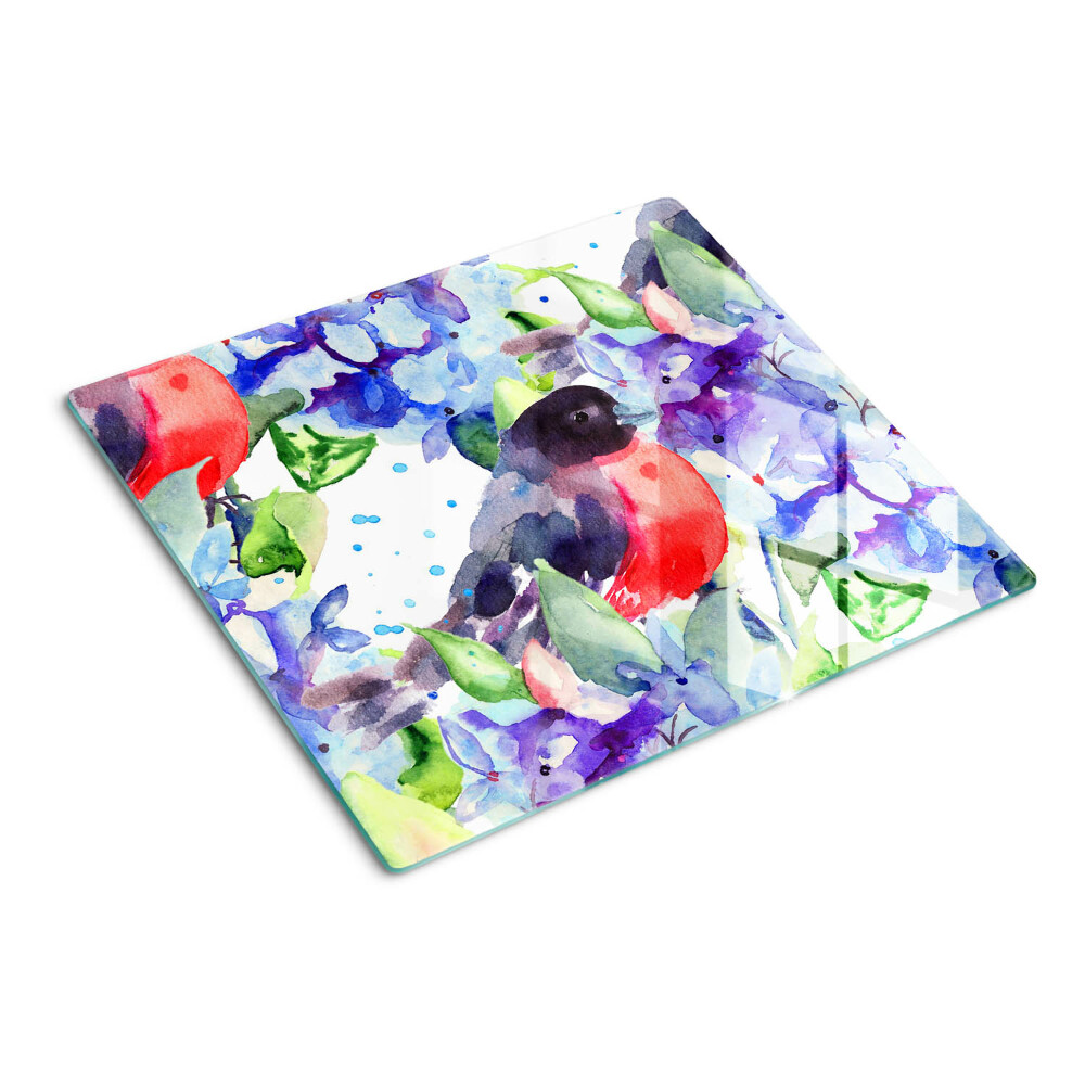 Üveg vágódeszka Madár a virágok hátterében 60x52 cm