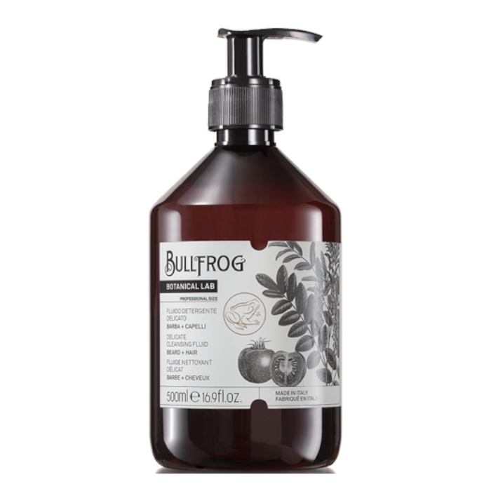 Bullfrog botanical delicate cleansing fluid - delikatna emulsja oczyszczająca do brody i włosów, 500ml