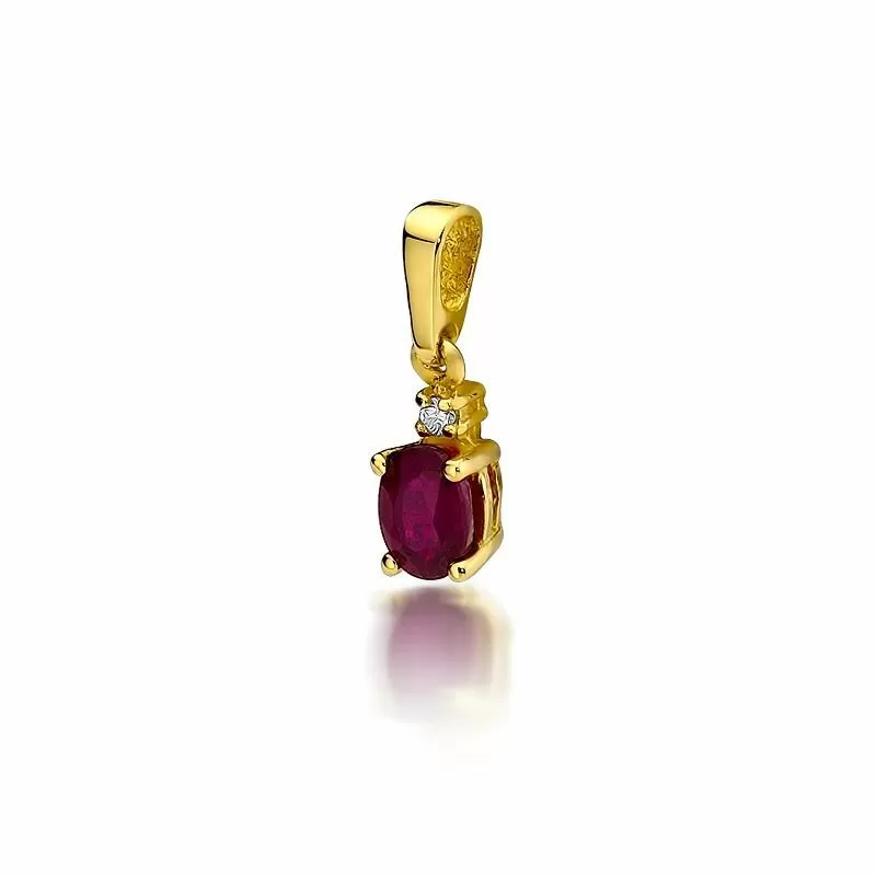 Saxo Diamonds Złota zawieszka wisiorek rubin z diamentem • Złoto 585 Rubin 0.60ct Brylant 0.0145ct