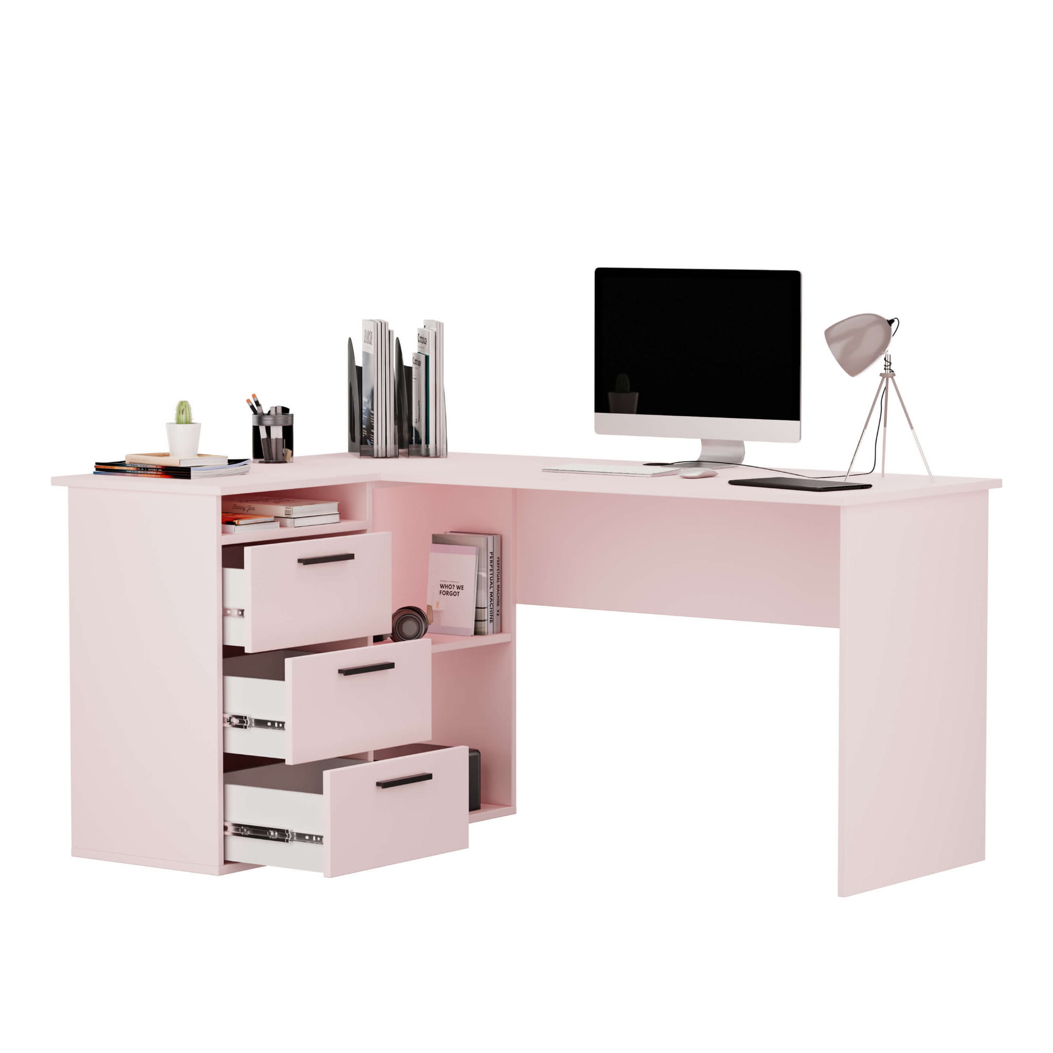 Biurko lekarskie narożne z szufladami - Różowe