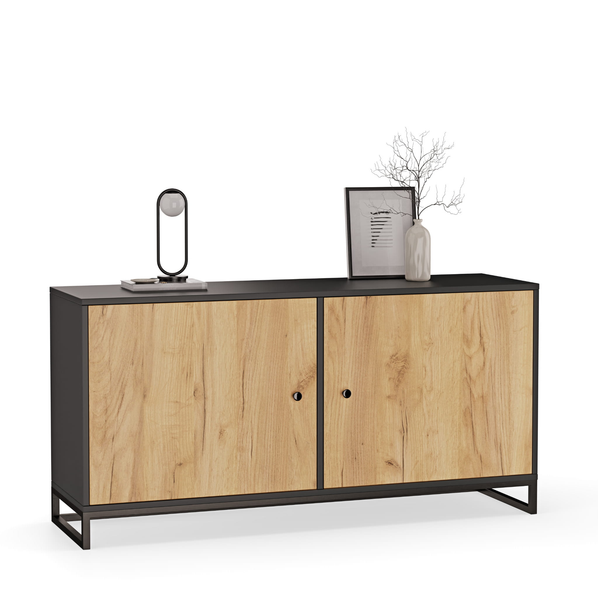 Komoda metalowa czarna/dąb złoty - kolekcja Metalove