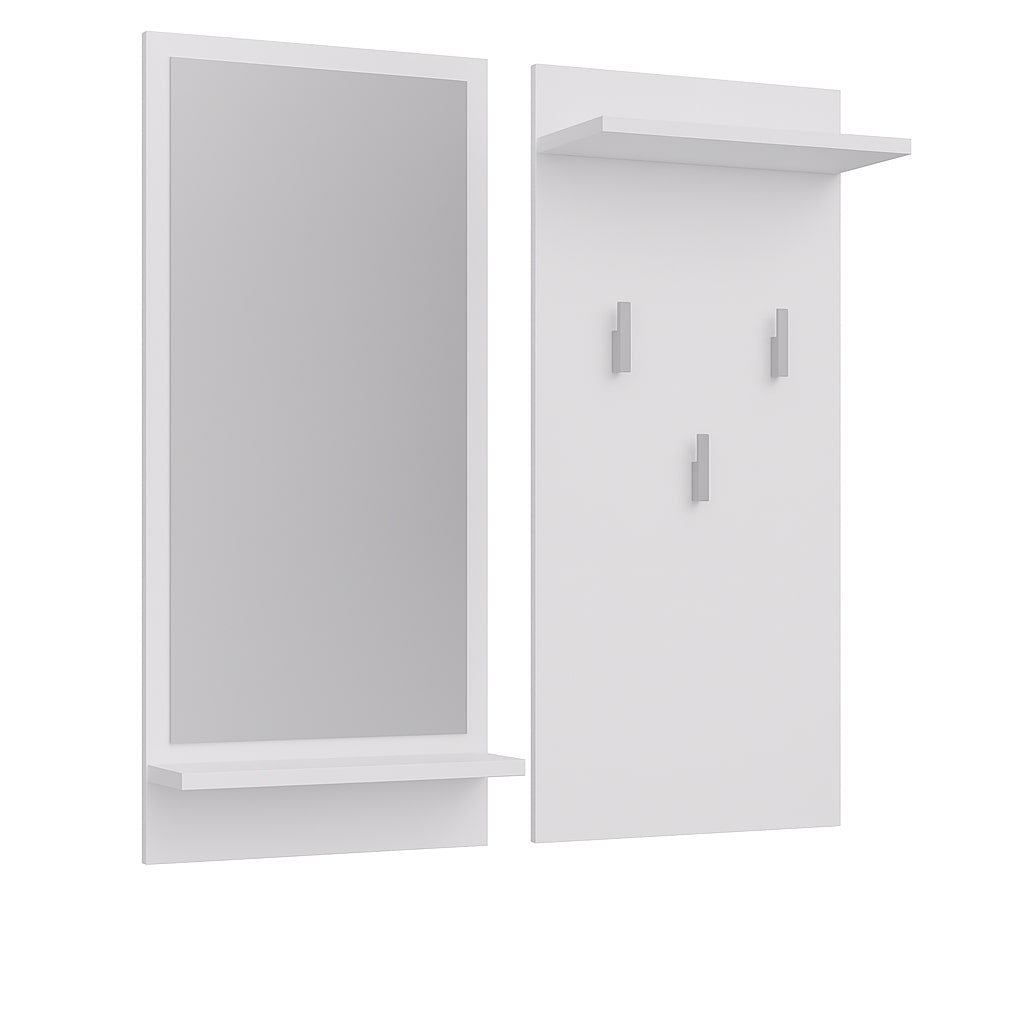 Biały wieszak ścienny do przedpokoju na ubrania z lustrem W06