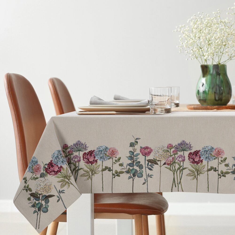 Obrus dekoracyjny gobelin 140x180 Eurofirany naturalny ogrodowe kwiaty peonie