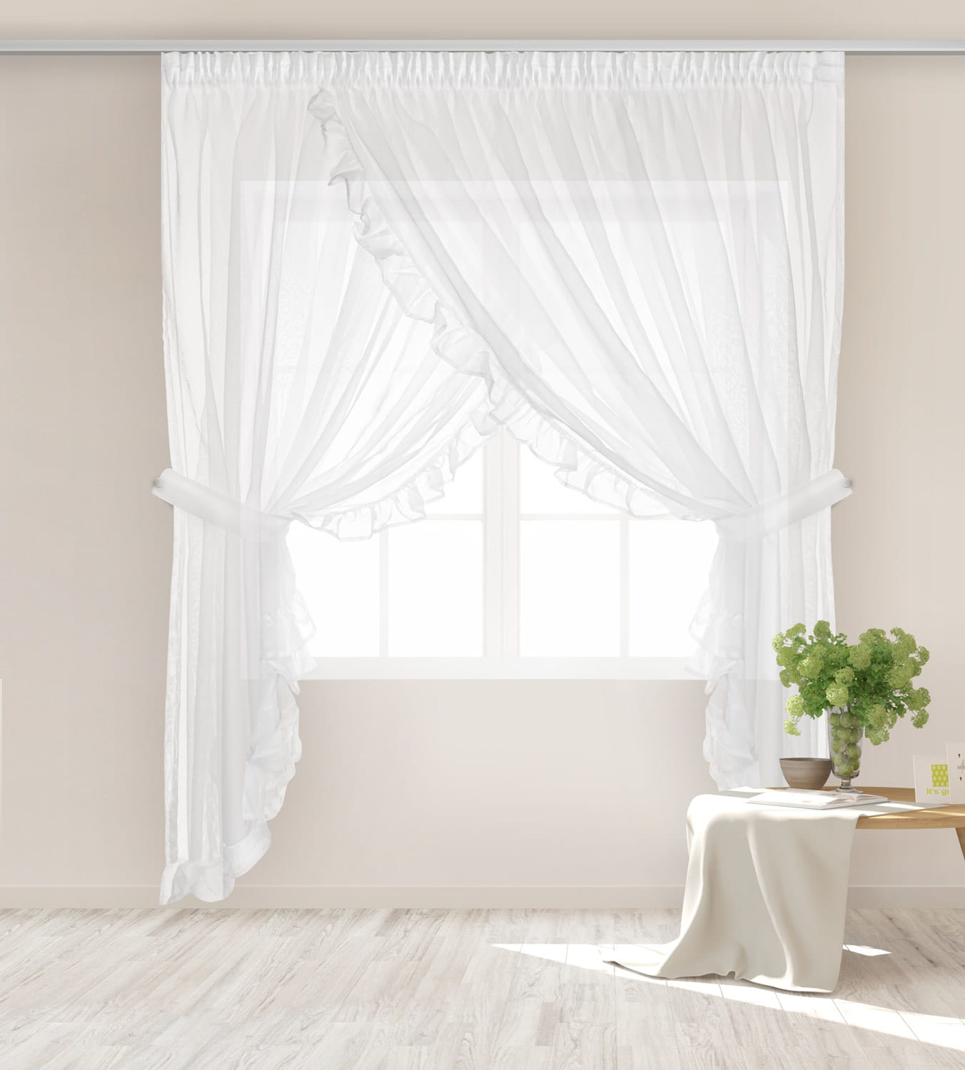 Firana gotowa na taśmie BRIGHT 400x250 biała z falbankami