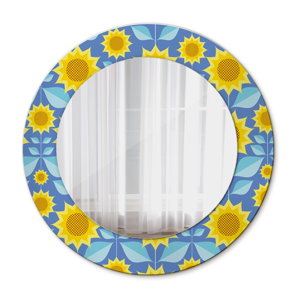 Oglinda rotunda rama cu imprimeu Oglinda rotunda rama cu imprimeu Floarea-soarelui geometrică