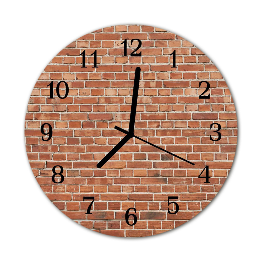 Sklenené hodiny okrúhle Tehlová múr