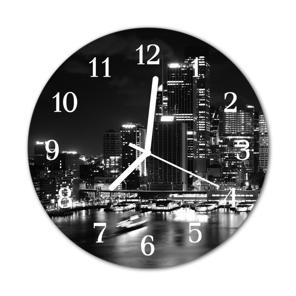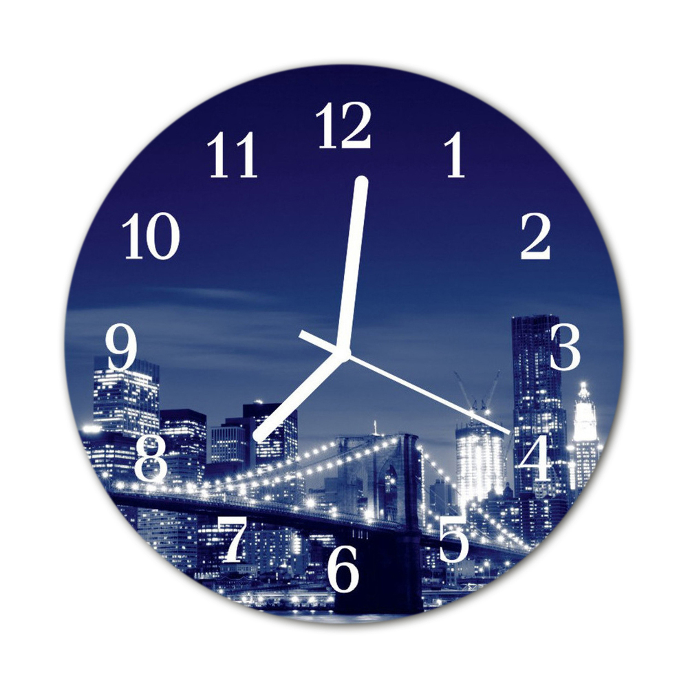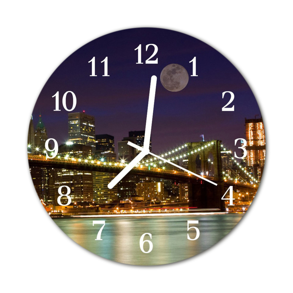 Sklenené hodiny okrúhle Most do mesta v noci