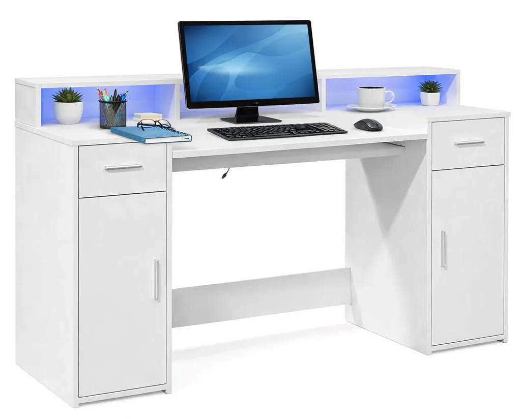 Białe duże biurko z szufladami podświetlane 160 cm - Duna